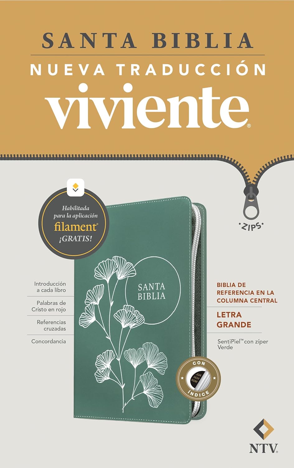 La Biblia de referencia en la columna central NTV, letra grande con Filament ofrece una combinación ideal de legibilidad, diseño atractivo y funcionalidad. Esta Biblia incluye el texto claro y confiable de la NTV y una presentación bien organizada, que incluye referencias cruzadas en la columna central.
