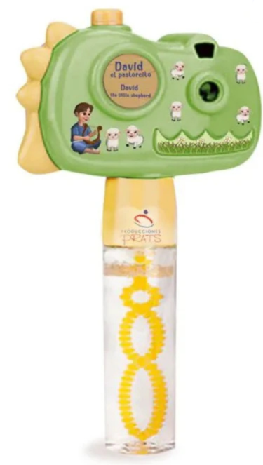 Los pequeños pasarán maravillosos momentos con este juguete multifunción que visualiza y proyecta imágenes con la historia de un personaje bíblico, además es un burbujero.