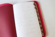 Biblia tamaño manual, ultrafina y con letra grande. Símil piel fucsia con cremallera, índice, canto dorado, cinta marcadora y fotos a color de Tierra Santa.