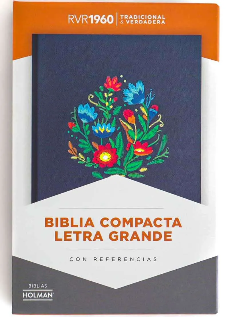 Biblia RVR1960 letra grande Tapa dura y tela morada con flores tamaño manual