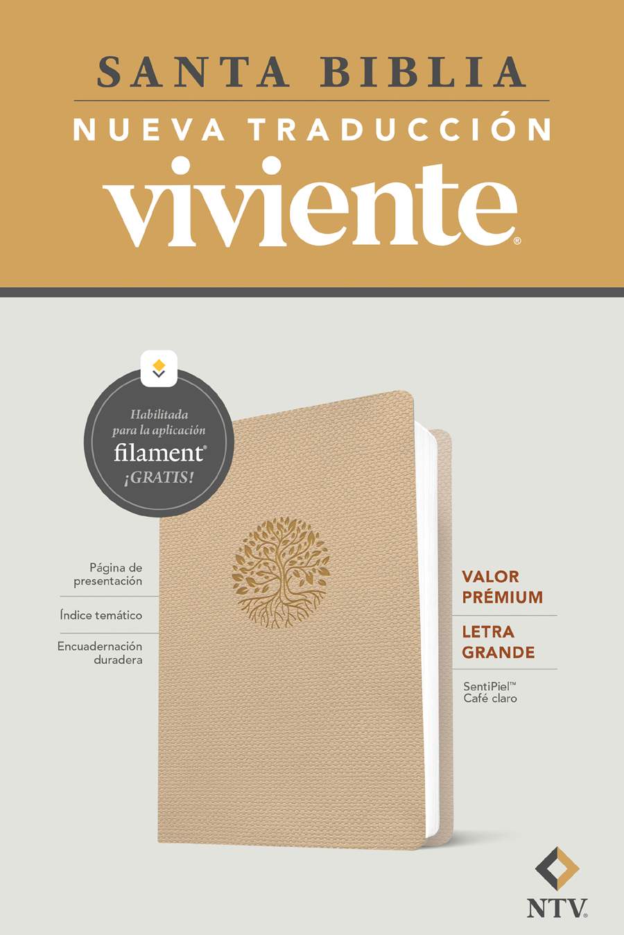 Biblia valor prémium NTV con Filament (SentiPiel, Café claro, Letra grande)