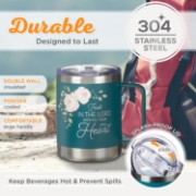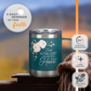 Send the Trust in the LORD Teal Floral Camp-Style Stainless Steel Travel Mug to college with your daughter to see her through the long nights of study.